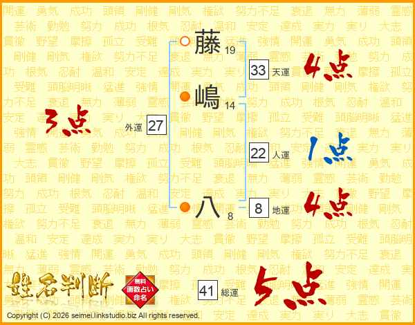 藤嶋八さんの総運は41画の5点!