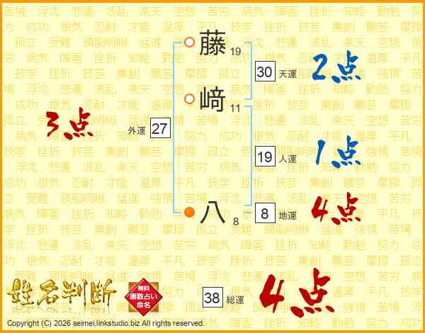 藤﨑八さんの総運は38画の4点!