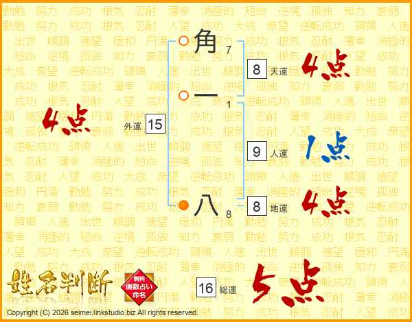 角一八さんの総運は16画の5点!
