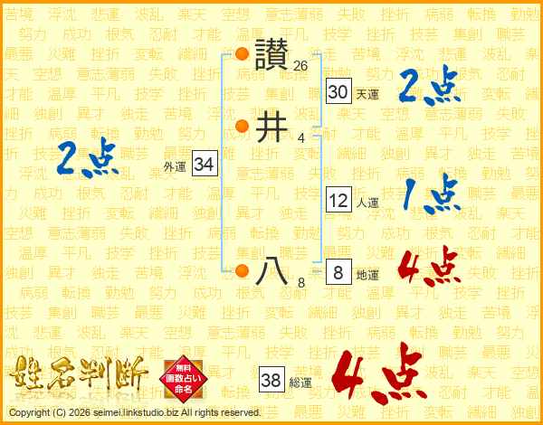 讃井八さんの総運は38画の4点!