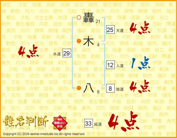 轟木八さんの天運は25画の4点!