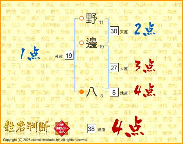 野邊八さんの総運は38画の4点!