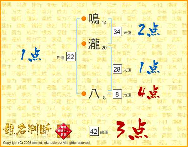鳴瀧八さんの天運は34画の2点!
