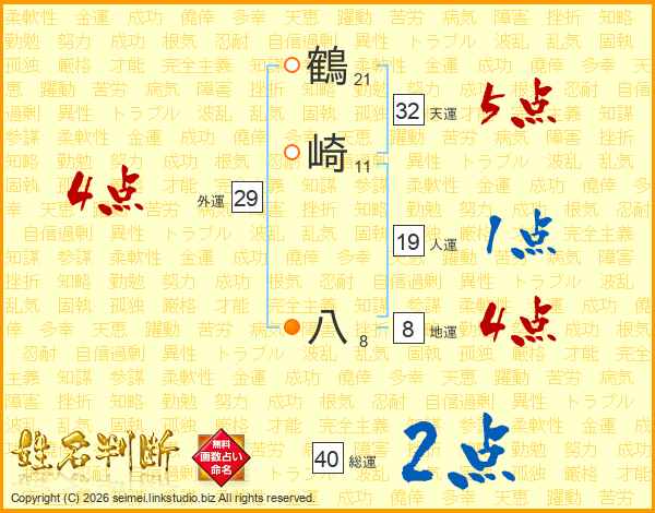 鶴崎八さんの総運は40画の2点!