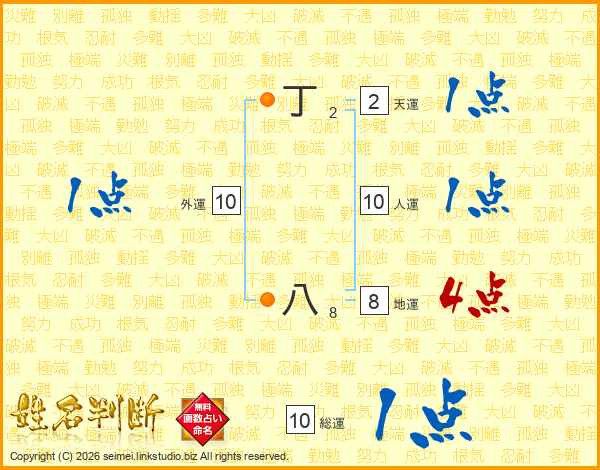 丁八さんの総運は10画の1点!