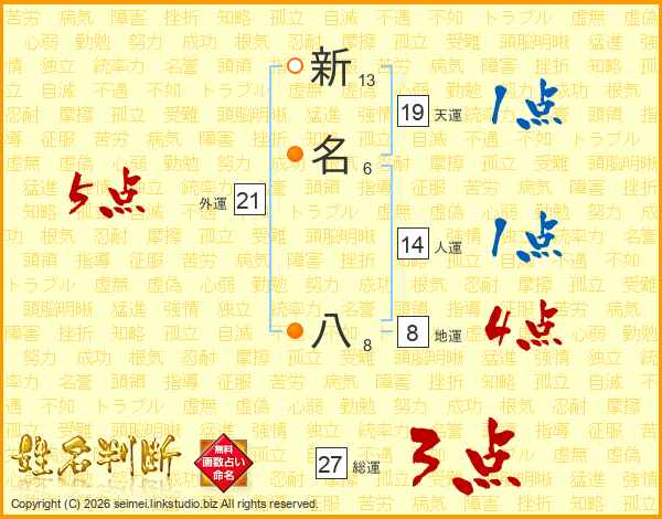 新名八さんの人運は14画の1点!