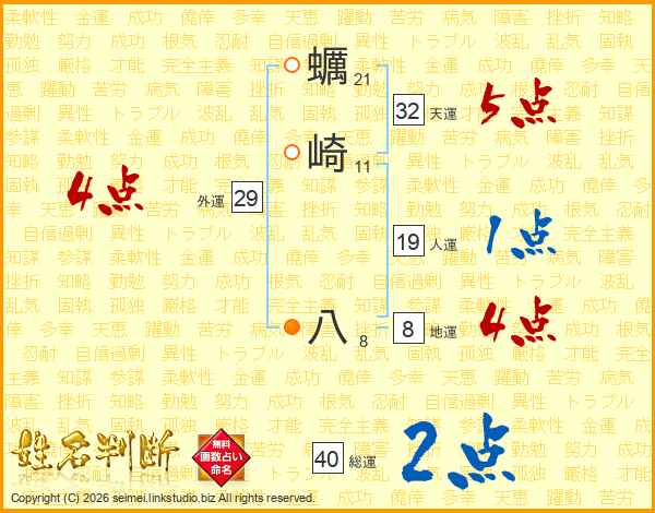 蠣崎八さんの天運は32画の5点!