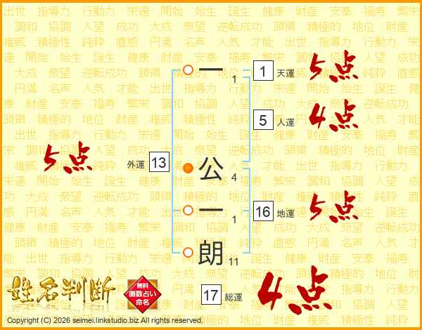 一公一朗さんの総運は17画の4点!