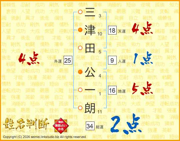 三津田公一朗さんの天運は18画の4点!