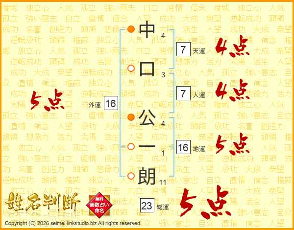 中口公一朗さんの地運は16画の5点!