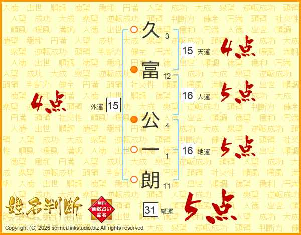 久富公一朗さんの総運は31画の5点!