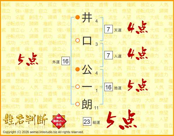 井口公一朗さんの総運は23画の5点!