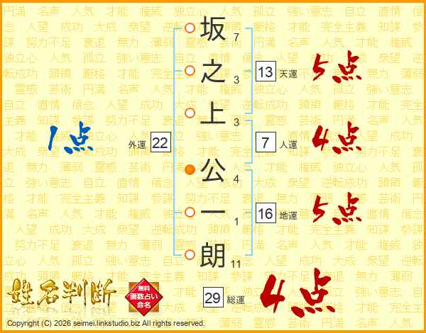 坂之上公一朗さんの人運は7画の4点!