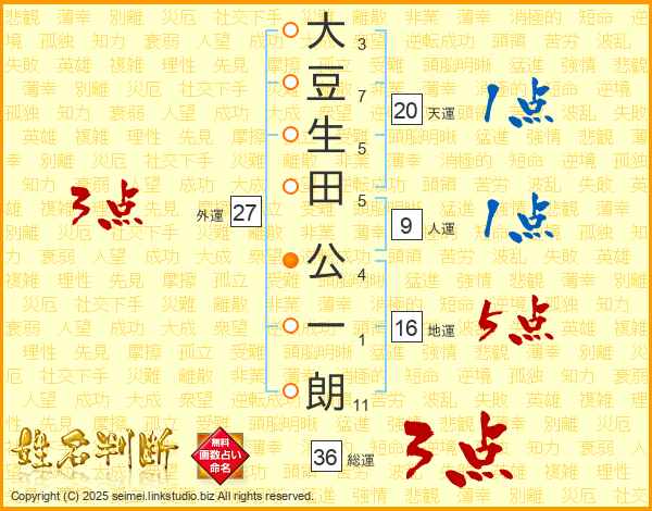 大豆生田公一朗さんの総運は36画の3点!