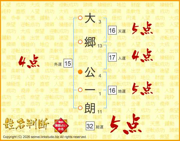 大郷公一朗さんの総運は32画の5点!