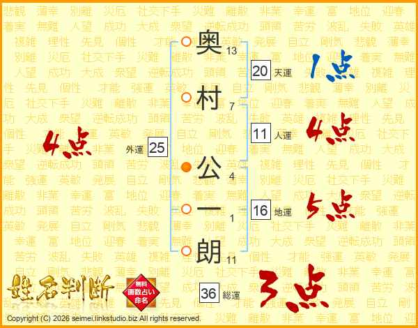 奥村公一朗さんの人運は11画の4点!