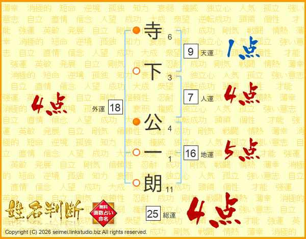 寺下公一朗さんの人運は7画の4点!