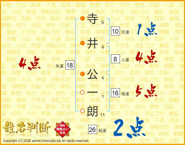 寺井公一朗さんの総運は26画の2点!