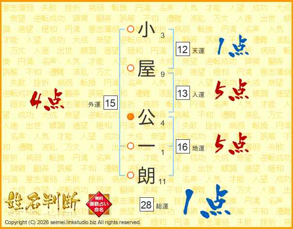 小屋公一朗さんの総運は28画の1点!