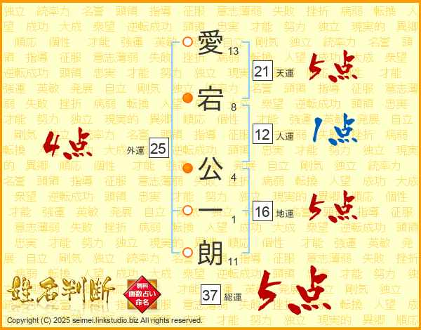 愛宕公一朗さんの総運は37画の5点!
