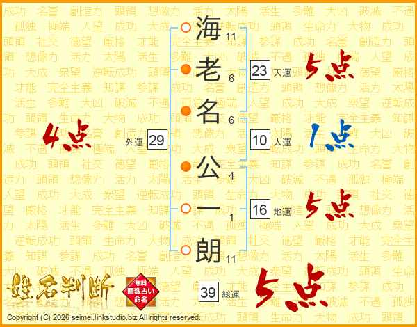 海老名公一朗さんの総運は39画の5点!