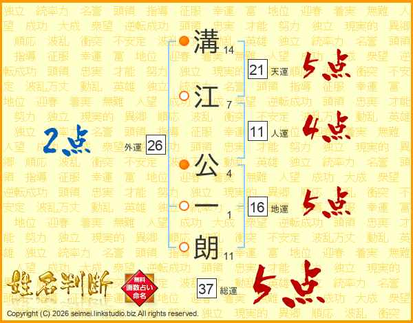 溝(14画)江(7画) 公(4画)一(1画)朗(11画)