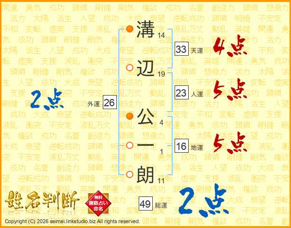 溝辺公一朗さんの天運は33画の4点!