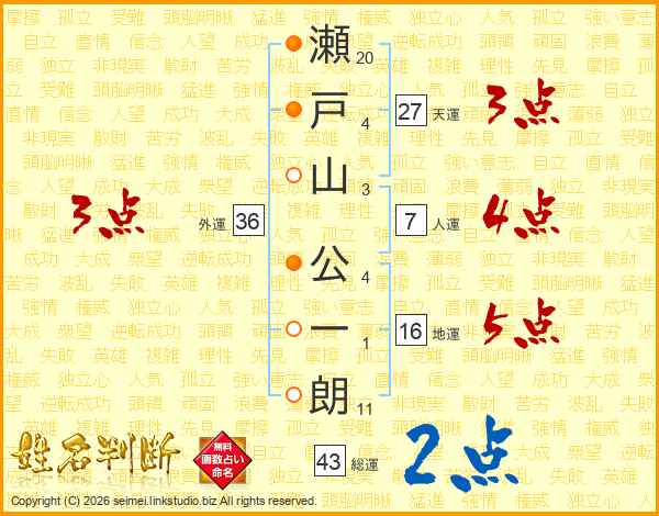 瀬戸山公一朗さんの天運は27画の3点!