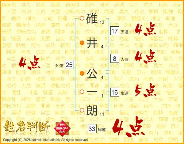 碓井公一朗さんの総運は33画の4点!