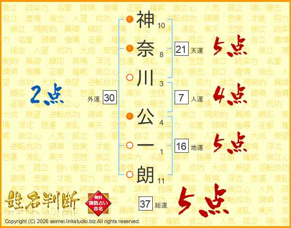 神奈川公一朗さんの天運は21画の5点!