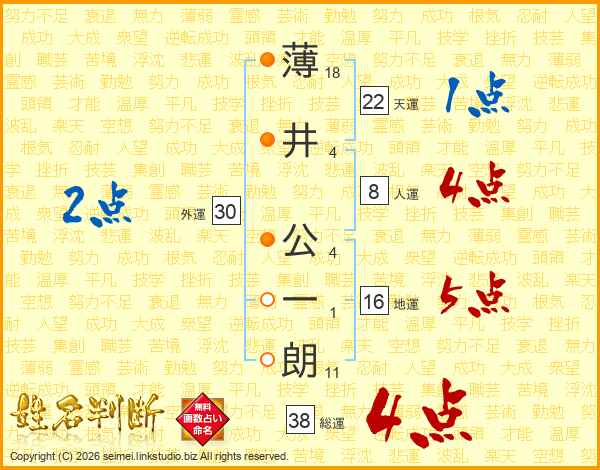 薄井公一朗さんの総運は38画の4点!
