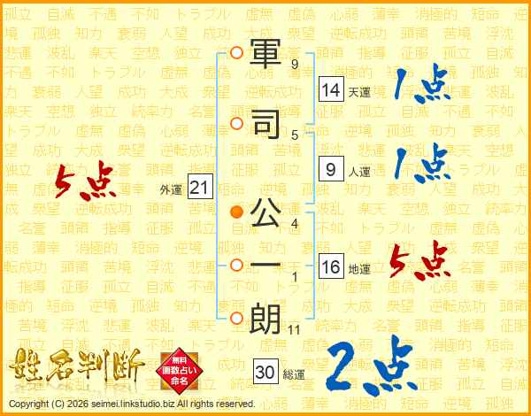軍司公一朗さんの総運は30画の2点!