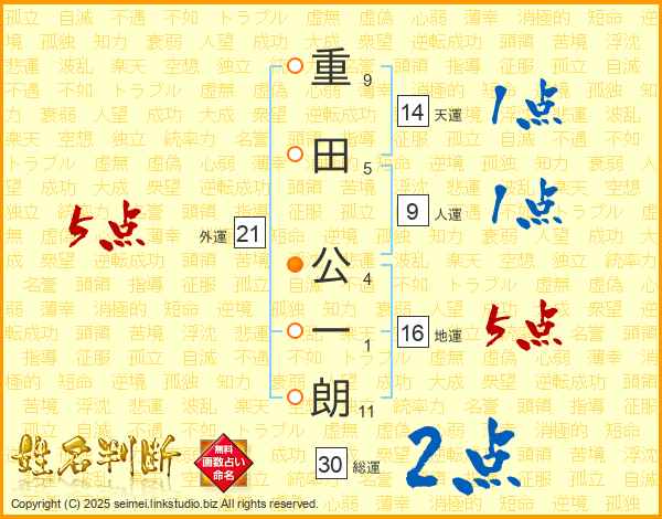 重田公一朗さんの天運は14画の1点!