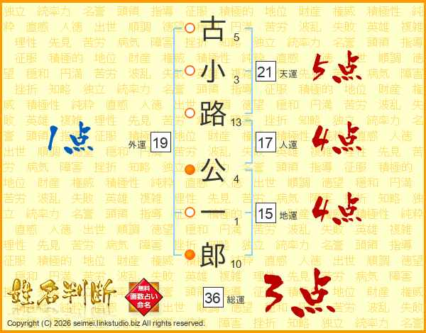 古(5画)小(3画)路(13画) 公(4画)一(1画)郎(10画)