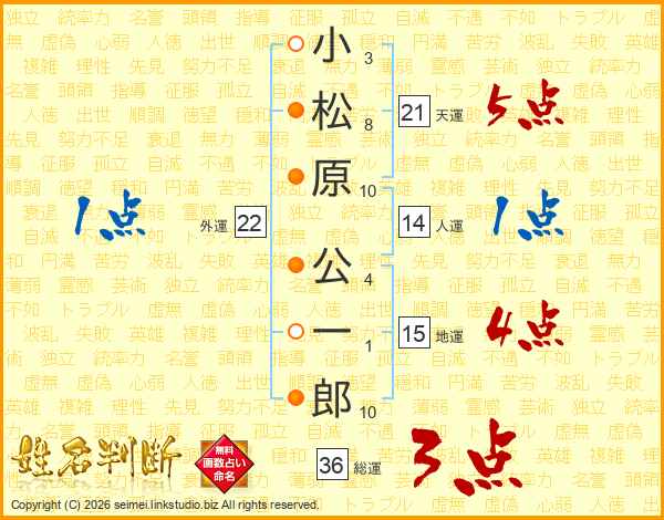 小松原公一郎さんの総運は36画の3点!