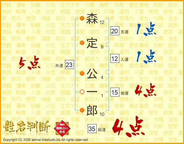 森定公一郎さんの総運は35画の4点!