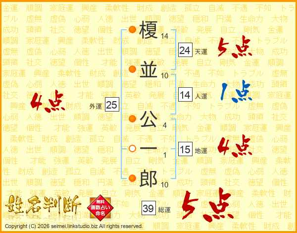 榎並公一郎さんの総運は39画の5点!