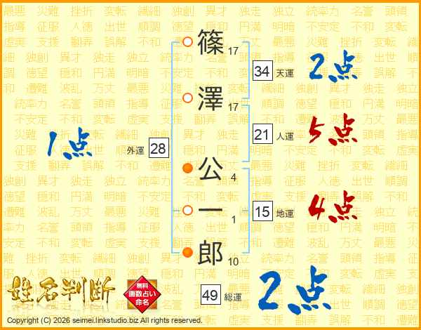 篠澤公一郎さんの総運は49画の2点!