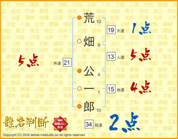 荒畑公一郎さんの総運は34画の2点!