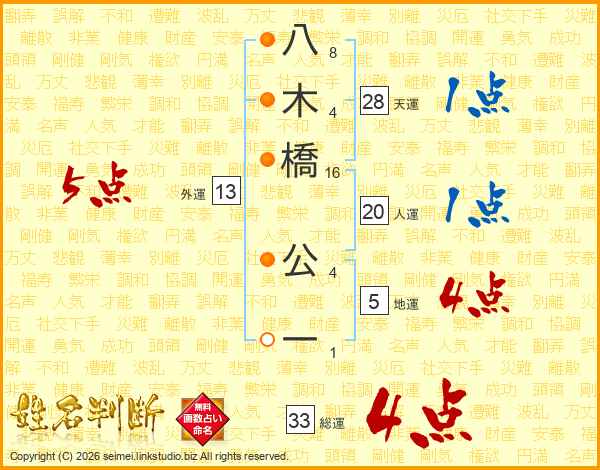 八木橋公一さんの総運は33画の4点!
