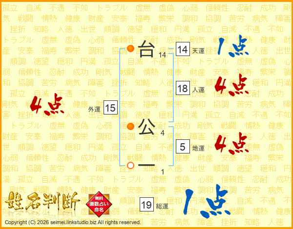 台公一さんの総運は19画の1点!