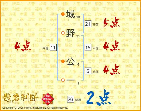 城野公一さんの総運は26画の2点!