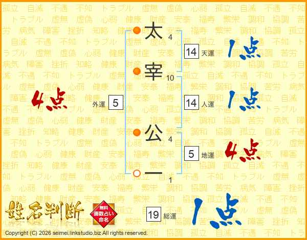 太宰公一さんの総運は19画の1点!