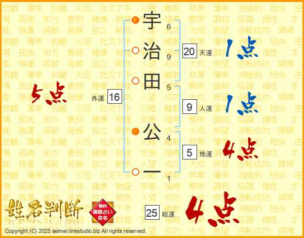 宇治田公一さんの外運は16画の5点!
