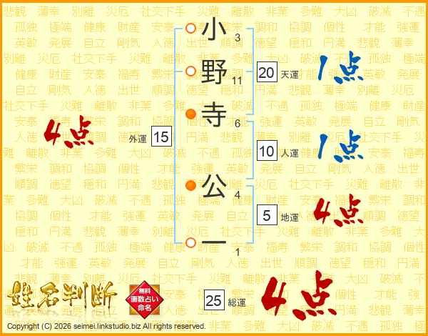 小(3画)野(11画)寺(6画) 公(4画)一(1画)