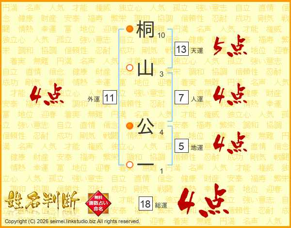 桐山公一さんの総運は18画の4点!