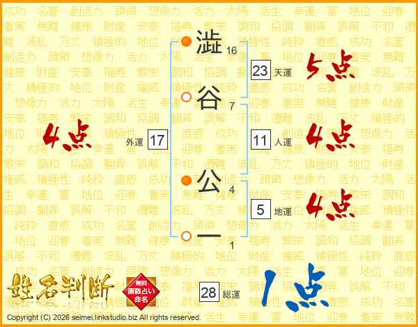 澁谷公一さんの総運は28画の1点!