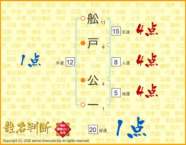 舩戸公一さんの天運は15画の4点!