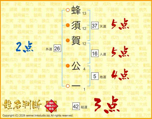 蜂須賀公一さんの天運は37画の5点!
