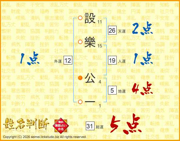 設樂公一さんの天運は26画の2点!